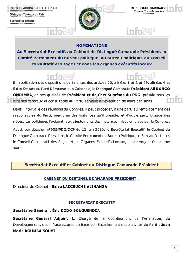 Selon le communiqué officiel de la Présidence gabonaise, Ali Bongo et son secrétaire général « ont fait un point de situation sur la méthodologie de travail au sein du PDG qui s’applique au principe de l’évaluation, instruite par le Président de la République ». En clair, c’est le président de la République donc l’Etat gabonais qui a imposé une « méthode de travail » à ce parti qui totalise plus de 50 ans au pouvoir dont la moitié sous le régime du parti unique.