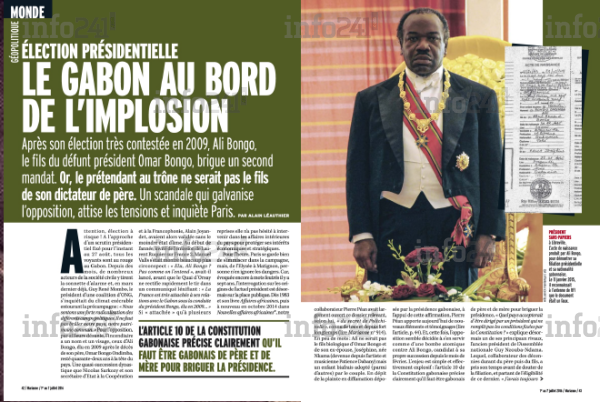 Avant d’indiquer que de « l’Élysée à Matignon, personne n’en n’ignore les dangers. Car évoquée encore à mots feutrés il y a sept ans, l’interrogation sur les origines de l’actuel président (gabonais) est désormais sur la place publique ». Cette affaire serait ainsi « une bombe atomique contre Ali Bongo » dont recourrait actuellement l’opposition gabonaise.