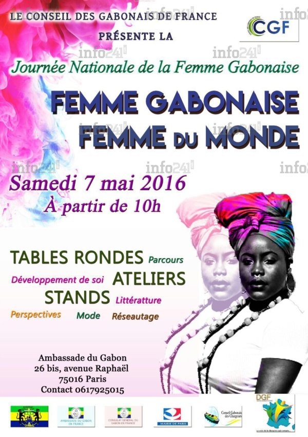 Le Conseil des Gabonais de France (CGF) organise le 7 mai 2016 à l’ambassade du Gabon à Paris, sa journée consacrée à la mise en valeur, sous toutes ses formes, de la femme gabonaise de France. Cette troisième édition 2016 sera donc placée sous le signe de l’ouverture aux femmes du monde avec pour thème : « Femmes de la diaspora Gabonaise & Femmes du Monde ».