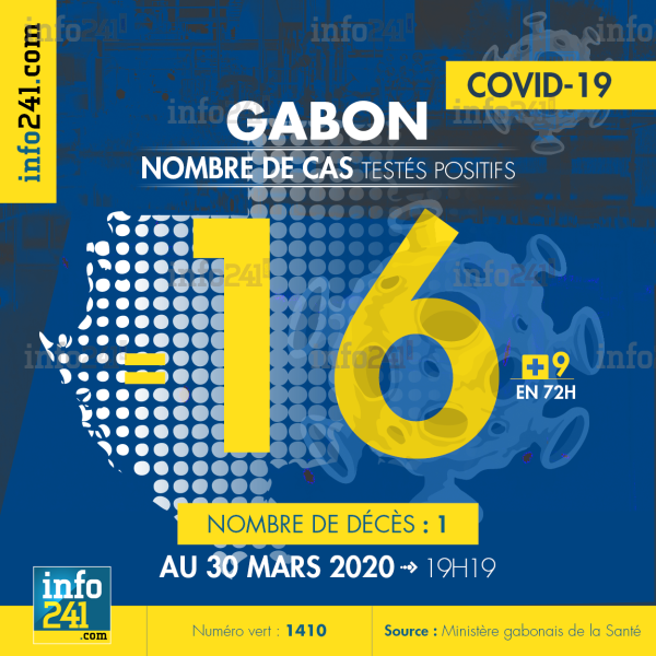 Après quatre jours de stagnation, le nombre de cas positifs au Covid-19 au Gabon a explosé ce lundi. Selon les autorités sanitaires, le pays a enregistré 9 nouveaux cas après les analyses effectués à Franceville par le CIRMF, le laboratoire agréé par l’OMS dans le pays. Ce qui porte à 16 le nombre total de patients atteints par la pandémie dont les premiers cas ont été enregistrés le 12 mars.