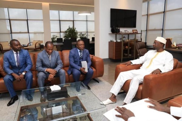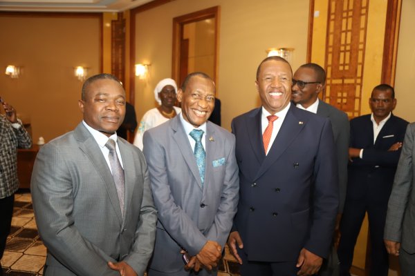 Le ministre des Transport devisant avec le premier ministre Sénégal Ousmane Sonko présentant la candidature gabonaise