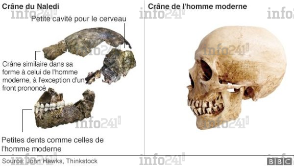 D’après John Hawks, chercheur à l’université de Wisconsin-Madison et auteur d’un article publié jeudi dans le magazine scientifique eLife, l’homo Naledi avait un cerveau minuscule de la taille d’une orange et un corps très élancé et il mesurait en moyenne 1,5 mètre et pesait 45 kilos.
