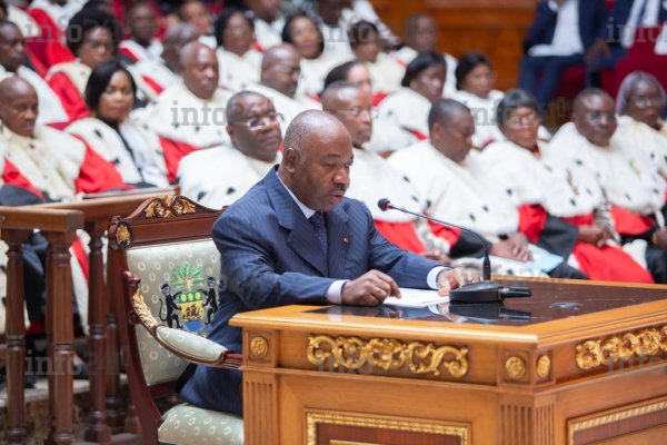 Ali Bongo présidant la cérémonie de prestation de serment des membres de la Cour constitutionnelle, ce matin