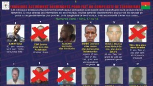 Ces personnes activement recherchées sont accusées de « participation ou complicité dans la préparation ou l’exécution d’actes terroristes ». Les photos des terroristes ont déjà été publiées dans les médias locaux. Presque tous sont originaires du nord du Burkina Faso. Parmi les criminels les plus dangereux figurent Sidibé Dramane alias Hamza et Diallo Moussa alias Abou Ganiou.
