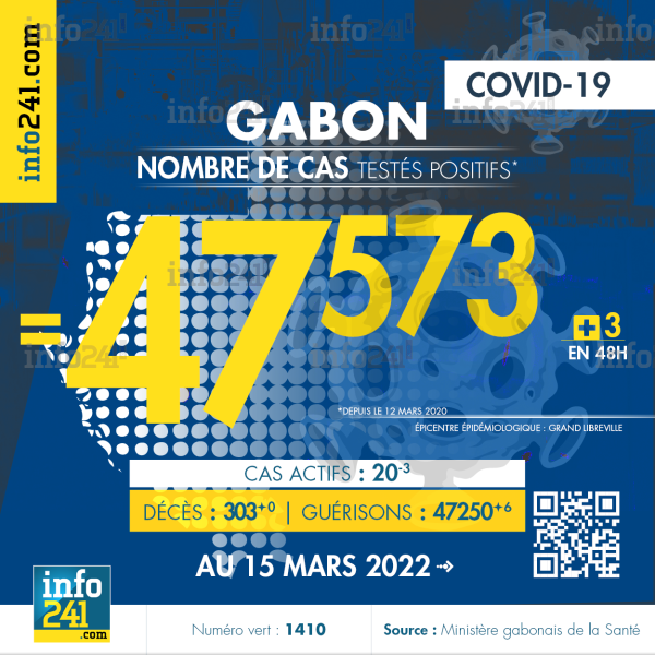 Coronavirus : le bilan épidémiologique du Gabon au 15 mars 2022 © 2022 D.R./Info241