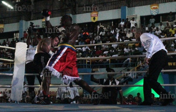 Après un travail de sape bien dosé, durant les trois premiers rounds, il a mis les bons ingrédients au bon moment. Le champion du monde gabonais FBU n’a plus eu à trop s’employer pour envoyer son adversaire au tapis, lors de la quatrième reprise d’un combat de 8 rounds de 3 minutes, faisant ainsi vibré le public venu nombreux au gymnase du prytanée militaire pour encourager le boxeur gabonais.