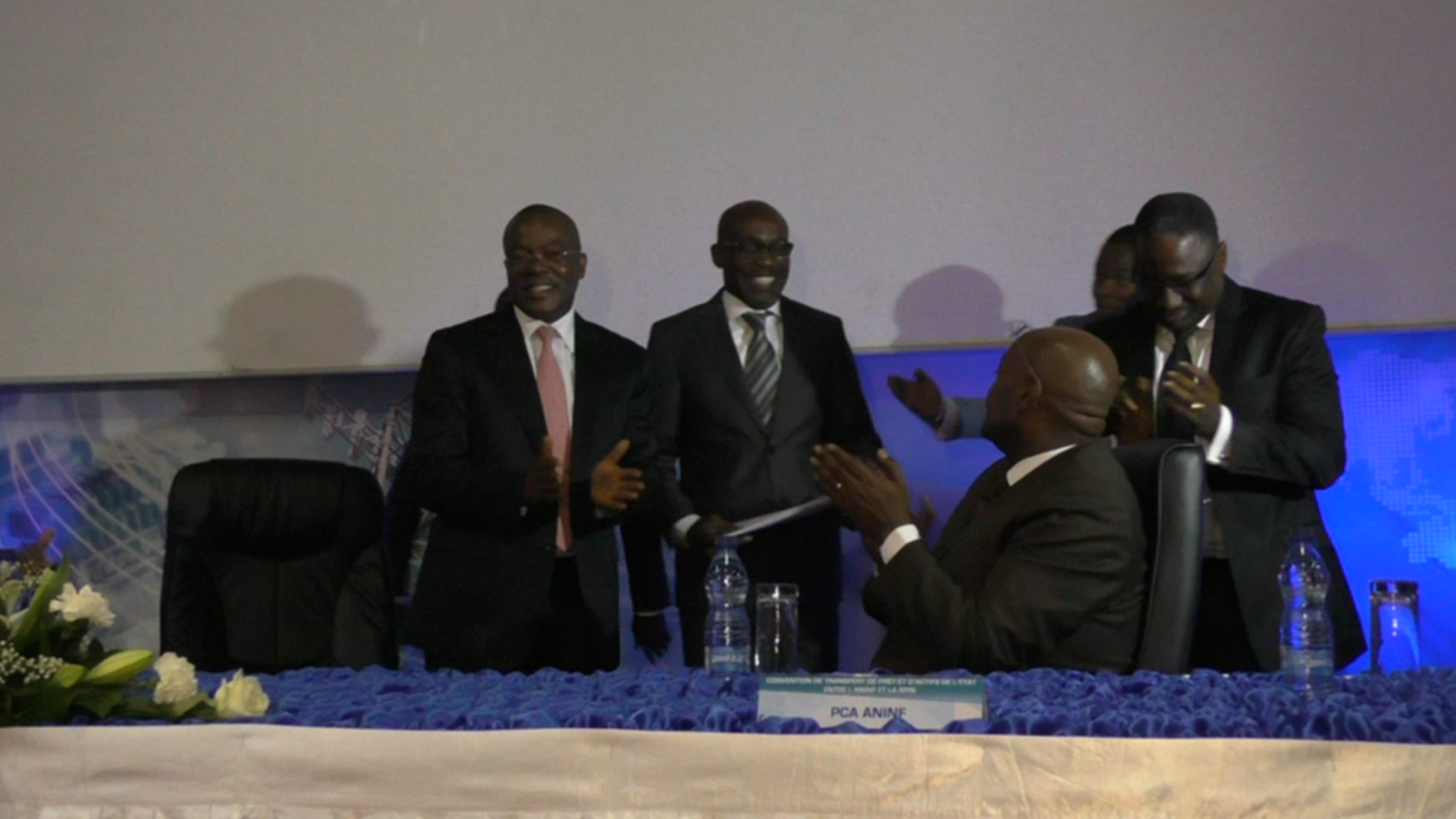 Après la projection d’un film d’entreprise retraçant les avantages de la mise en service de la fibre optique pour les usagers de la téléphonie mobile et d’internet au Gabon, le directeur général de la SPIN et celui de l’ANINF ont procédé à la signature de convention de transfert. Puis le ministre a été invité à rejoindre les directeurs généraux de l’ANINF et de la SPIN pour procéder au transfert.