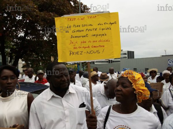 « Trop c’est trop, depuis 17 ans, les ex-agents de Gabon Poste vivent dans la pauvreté totale : les familles disloquées, les enfants non scolarisés, plusieurs décès, plusieurs malades, plusieurs délinquants. Payez-nous ! », pouvait-on lire sur l’une des banderoles brandie devant le Trésor public.