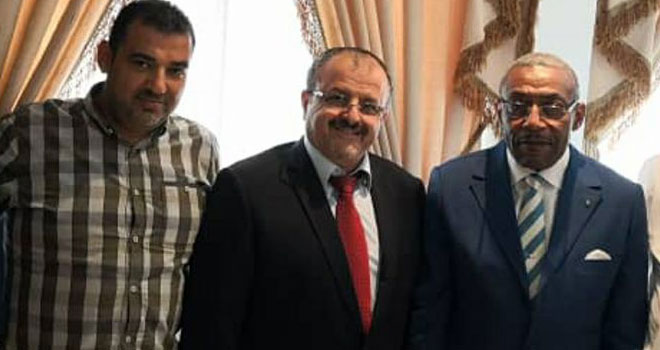 Imad Jaber Nzong (centre), posant ici avec l’ancien secrétaire général du parti d’Ali Bongo