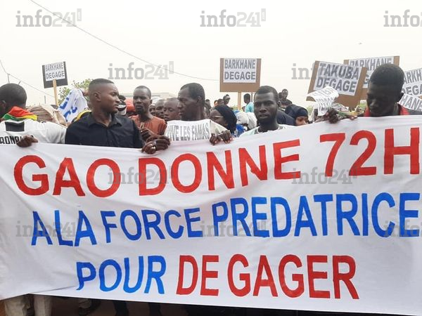 En conséquence, les Forces vives de la Ville de Gao accordent à compter de ce dimanche 14 août 2022 un ultimatum de 72 heures pour le départ définitif de Barkhane affirmant : « Ce délai passé, nous interdirons la circulation de toutes les forces étrangères dans la ville de Gao et sur les axes routiers : Gao-Ansongo, Gao-Bourem, Gao-Wabaria, sans préjudice de toutes autres actions nécessaires, jusqu’à l’atteinte de notre objectif ». Elles exhortent les autorités de la Transition malienne "d’accentuer les efforts de redéploiement des Forces armées et de sécurité sur l’ensemble du territoire national".