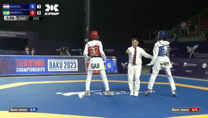 Urgence Mouega a quant à elle eu aucun mal à passer le premier tour de la compétition mondiale. Opposée à la brésilienne Thaisa Da Silva, la championne gabonaise s’est débarrassée de son adversaire en 1-0 eu premier round, puis largement par 16-6 au second. Puis dans l’après-midi, elle a trouvé plus coriace en la personne de la jordanienne Abo-Alrub Rama. Il aura fallu 3 rounds pour les départager.