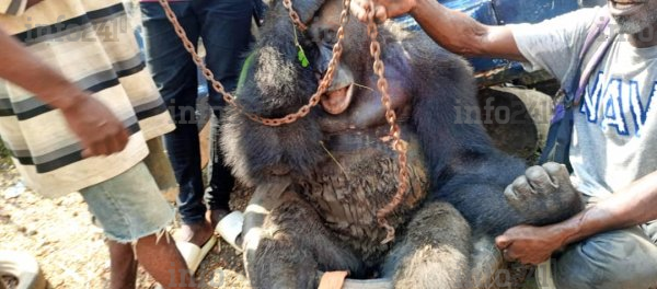 C’est finalement un chasseur qui a résolu ce dilemme vendredi matin en abattant le gorille, considéré comme une espèce protégée au Gabon. Un seul coup de fusil a suffi pour ramener le calme dans le quartier Bavanga. L’animal a ensuite été rapidement dépecé et découpé en morceaux destinés à rejoindre les marmites, soulignant une réalité paradoxale où la protection de certaines espèces se heurte à la nécessité de subsistance alimentaire.