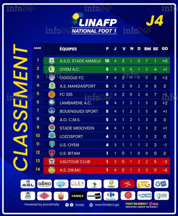 La quatrième journée du championnat national de football du Gabon, National Foot 1, disputée ce samedi 28 mars, a livré son lot de sensations fortes sur les différentes pelouses du pays. Si le Stade Mandji est parvenu à conserver son précieux fauteuil de leader à l’issue d’un match nul et vierge âprement disputé (0-0) en déplacement face à l’Union Sportive de Bitam, cette nouvelle levée a surtout été le théâtre de bouleversements majeurs au sein du classement général.