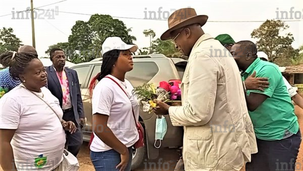 Bain de foule et accueil des grands jours depuis le district de Bibasse offerts et organisés par messieurs Ella Oyono, Richard Ndong Ekore et Pascal Ntoutoume, respectivement délégué communal, conseiller municipal et responsable du canton Nyé. Il s’est tout de suite rendu au domicile privé de l’ancien et charismatique maire de cette commune d’Oyem, Vincent Essono Mengue, après une brève visite du siège de sa formation politique.