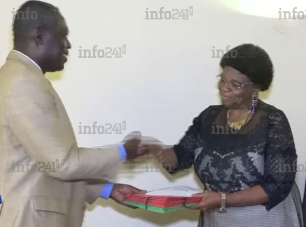 Le président de la commission ad hoc passant hier les 9 dossiers de candidature retenues à la présidente du collège spécial