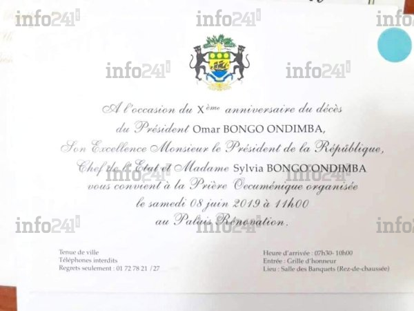 D’après le carton d’invitation à cette messe familial qui revêt désormais un caractère national, les invités triés sur le volet seront autorisés par le protocole d’Etat à arriver à la salle des banquets qu’entre 7h30 et 10h00. Passé ces horaires, il ne sera plus possible de prendre part à cette cérémonie de prières pour la mémoire du père d’Ali Bongo, prévue pour débuter ce 8 juin à 11h00 précises. A noter, les convives devront également laisser leurs téléphones loin de cette manifestation présidentielle, officiellement organisée par Ali Bongo et son épouse Sylvia.